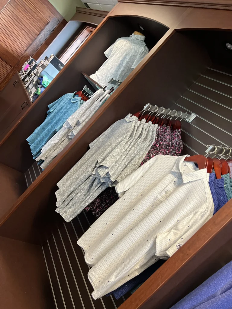 Check out our complete line of golf attire. We have polos, jackets, hats and more! Stop in and find some comfortable, stylish clothes today!