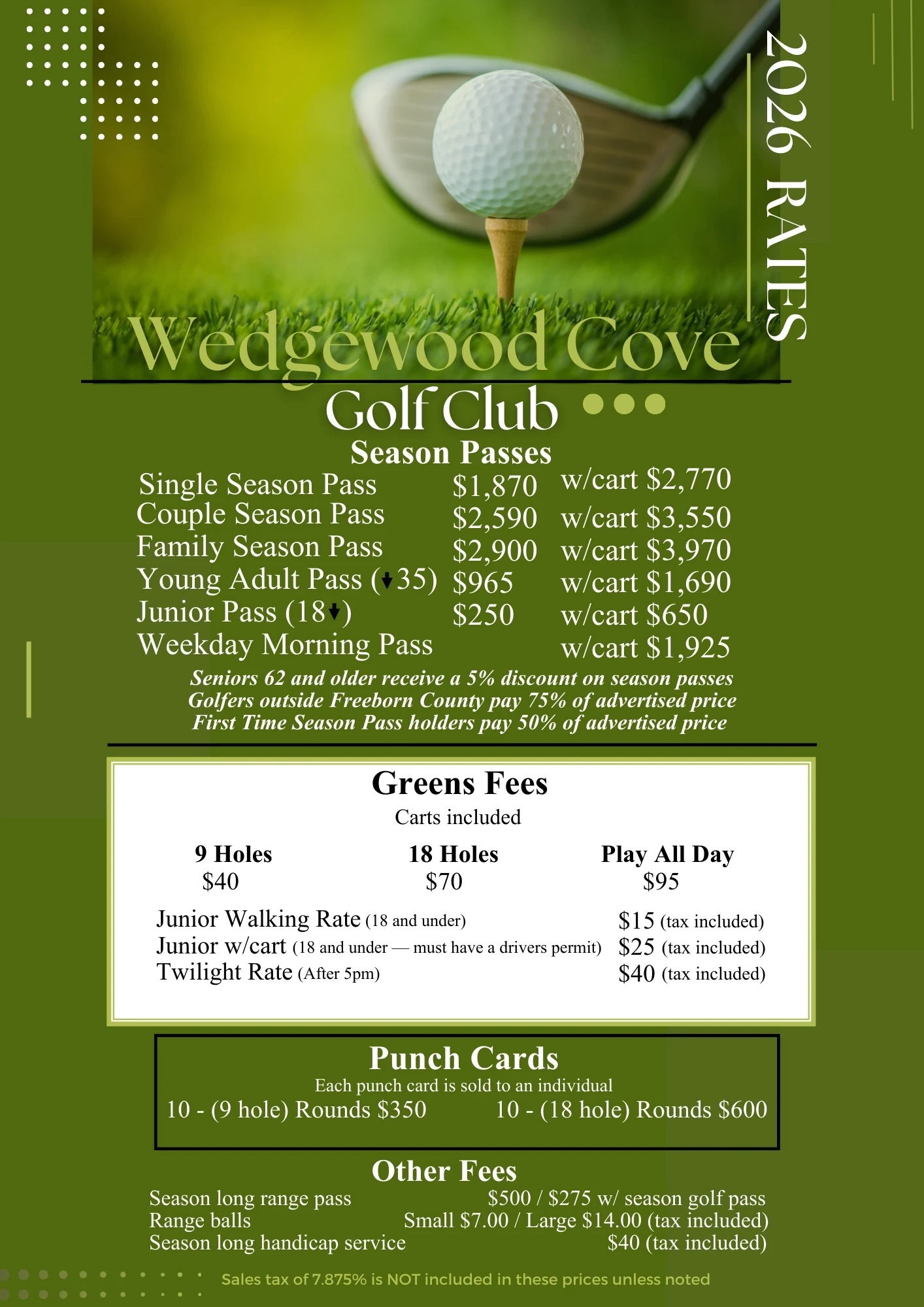 We feature and are proud to carry Titleist, Ping and Callaway golf clubs. Our Head Golf Professional is happy to assist and fit you for the right iron or driver and find you the perfect putter!